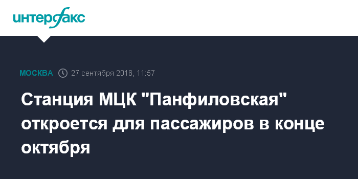 Москва. 27 сентября. INTERFAX.RU - Станция Московского центрального кольца (МЦК) "Панфиловская" откроется для пассажиров в конце октября, рассказал журналистам во вторник заместитель генерального директора по строительству АО "МКЖД" Николай Конторщиков.