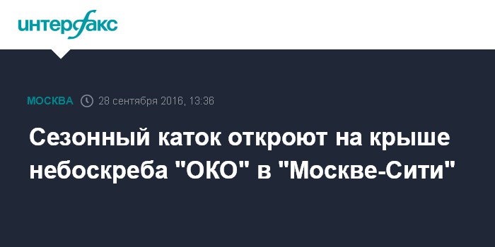 Москва. 28 сентября. INTERFAX.RU - Сезонный каток откроется на крыше небоскреба "ОКО" в ММДЦ "Москва-Сити", сообщил журналистам в среду заместитель генерального управляющего ресторанного объединения "354" Глеб Марач.