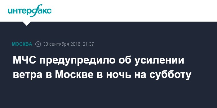 "По информации ФГБУ "Центральное УГМС" с 21:00 часа 30 сентября до 9:00 часов 1 октября в Москве ожидается усиление западного, юго-западного ветра с порывами до 12-17 м/с", - говорится в сообщении.