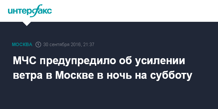 Москва. 30 сентября. INTERFAX.RU - В ближайшие часы в Москве ожидается усиление западного ветра с порывами до 17 м/с, сообщили "Интерфаксу" в пятницу в пресс-службе столичного главка МЧС.