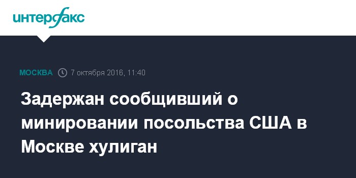 Задержан сообщивший о минировании посольства США в Москве хулиган