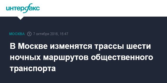 Москва. 7 октября. INTERFAX.RU - В Москве с 8 октября в связи с организацией новой дорожной сети изменятся трассы следования шести ночных маршрутов общественного транспорта. Об этом сообщается на сайте mos.ru.