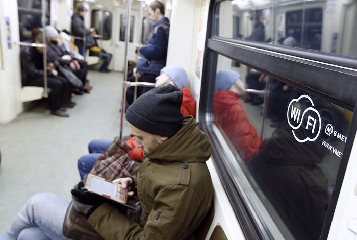 "Каждый поезд подключен к сети на скорости до 100 Мбит/с - подобного сервиса нет ни в одном городе мира. Точки доступа в интернет находятся в каждом вагоне, таким образом, было оборудовано более 5 тыс. вагонов. В тоннелях метрополитена установлено 900 базовых станций и проложено 880 км оптоволоконного кабеля", - сказал он.