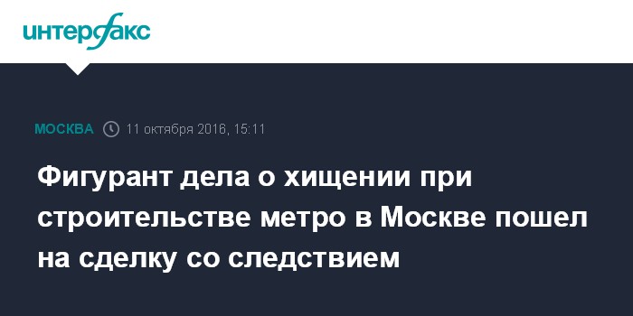 Фигурант дела о хищении при строительстве метро в Москве пошел на сделку со следствием