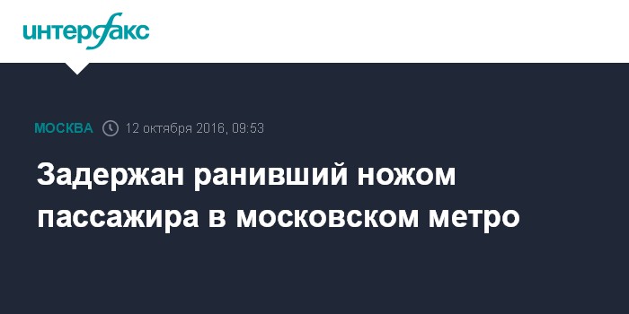 Москва. 12 октября. INTERFAX.RU - Полицейское задержали молодого человека, пырнувшего ножом мужчину во время ссоры в метро, сообщила официальный представитель МВД РФ Ирина Волк.