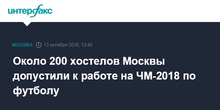 Около 200 хостелов Москвы допустили к работе на ЧМ-2018 по футболу