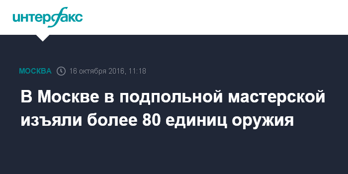 Москва. 16 октября. INTERFAX.RU - Полицейские выявили в Москве нелегальную оружейную мастерскую, сообщила "Интерфаксу" официальный представитель МВД России Ирина Волк в воскресенье.