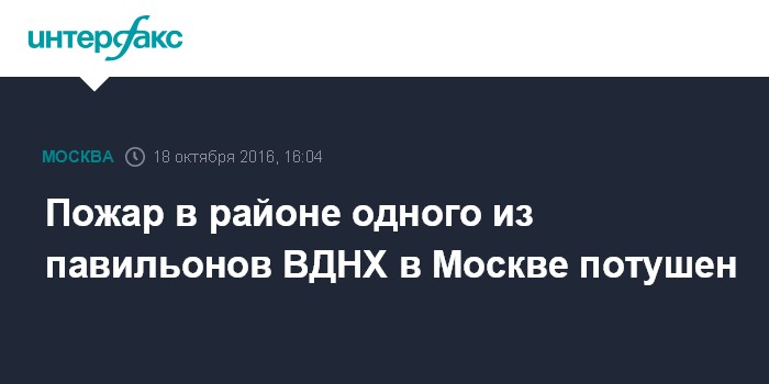 Москва. 18 октября. INTERFAX.RU - Пожар рядом с павильоном ВДНХ в Москве ликвидирован, сообщили "Интерфаксу" в пресс-службе столичного главка МЧС. К тушению привлекались 5 единиц техники и 18 человек личного состава МЧС.