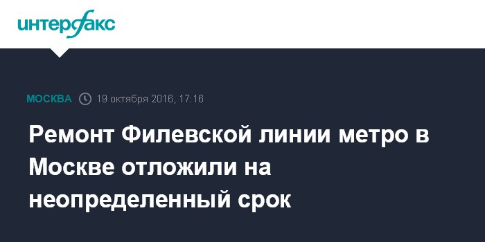 Москва. 19 октября. INTERFAX.RU - Ремонт Филевской линии московского метро, который должен был начаться 21 октября, переносится на неопределенный срок, сообщает столичный метрополитен.