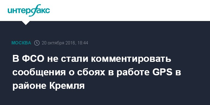 Москва. 20 октября. INTERFAX.RU - В Федеральной службе охраны (ФСО) воздержались от комментариев в связи с появившимися сообщениями о сбоях в работе GPS-навигаторов в районе Кремля.