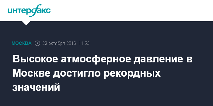 Высокое атмосферное давление в Москве достигло рекордных значений