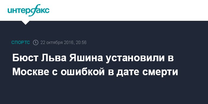 Москва. 22 октября. INTERFAX.RU - Бюст легендарного голкипера сборной СССР по футболу и московского "Динамо" Льва Яшина, установленный в субботу на "Аллее героев спорта" РГУФКСМиТ (ГЦОЛИФК)), содержит ошибку в дате смерти.