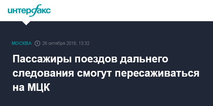 Пассажиры поездов дальнего следования смогут пересаживаться на МЦК
