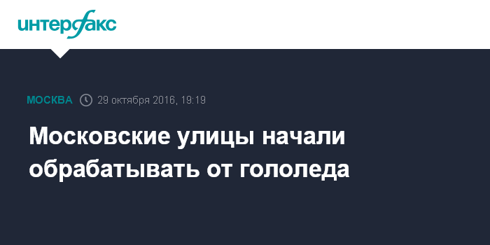 Москва. 29 октября. INTERFAX.RU - Специализированная техника в 19:00 вышли на противогололедную обработку дорог столицы, сообщили "Интерфаксу" в комплексе городского хозяйства в субботу.