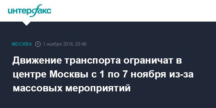 Москва. 1 ноября. INTERFAX.RU - Столичная мэрия предупреждает автомобилистов об ограничениях движения на центральных улицах в первую неделю ноября.