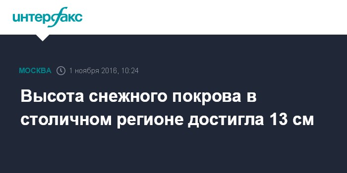Москва. 1 ноября. INTERFAX.RU - По данным на утро вторника,высота снежного покрова в столичном регионе достигала 13 см, сообщает портал "Метеоновости".