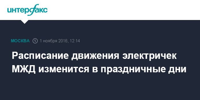 Москва. 1 ноября. INTERFAX.RU - С 4 по 7 ноября в связи с празднованием Дня народного единства изменится движение пригородных электричек Московской железной дороги, сообщается во вторник на сайте МЖД.