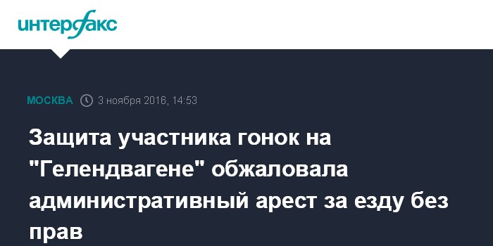 Москва. 3 ноября. INTERFAX.RU - Адвокат оправданного участника гонок на "Гелендвагене" Абдувахоба Маджидова обжаловала его административный арест за езду без водительских прав по улицам столицы.