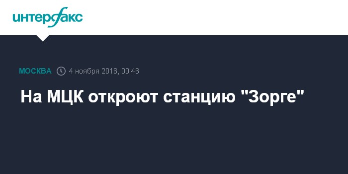 Москва. 4 ноября. INTERFAX.RU - Станция "Зорге" откроется на Московском центральном кольце в пятницу, сообщили "Интерфаксу" в пресс-службе Московской железной дороги.