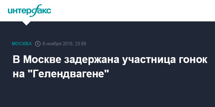 Москва. 6 ноября. INTERFAX.RU - Участница гонок на "Гелендвагене" Мара Багдасарян задержана в Москве за нарушение правил парковки, сообщил "Интерфаксу" источник в правоохранительных органах. По его словам, Багдасарян была задержана в воскресенье на Ленинском проспекте сотрудниками ГИБДД ГУ МВД России по Москве, был составлен административный материал за нарушение правил парковки автомашины. В пресс-службе столичной полиции подтвердили этот факт, не уточнив имя водителя.