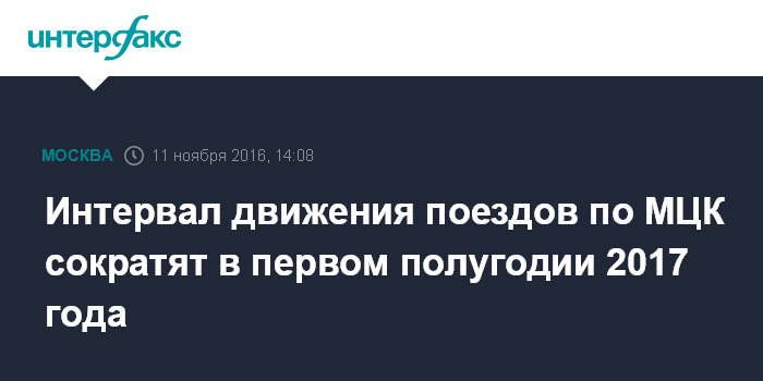 Москва. 11 ноября. INTERFAX.RU - Интервалы движения поездов на Московском центральном кольце (МЦК) сократятся до четырех минут в первой половине 2017 года, сообщил заместитель мэра столицы Максим Ликсутов "Интерфаксу" в пятницу.