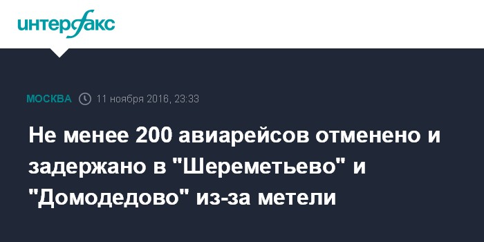 Не менее 200 авиарейсов отменено и задержано в "Шереметьево" и "Домодедово" из-за метели
