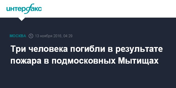Москва. 13 ноября. INTERFAX.RU - Пожар в подмосковных Мытищах унес жизни троих человек. Как сообщает главное управление МЧС РФ по Московской области, пожар возник в одном из домов городского округа Мытищи в 22:38 мск.