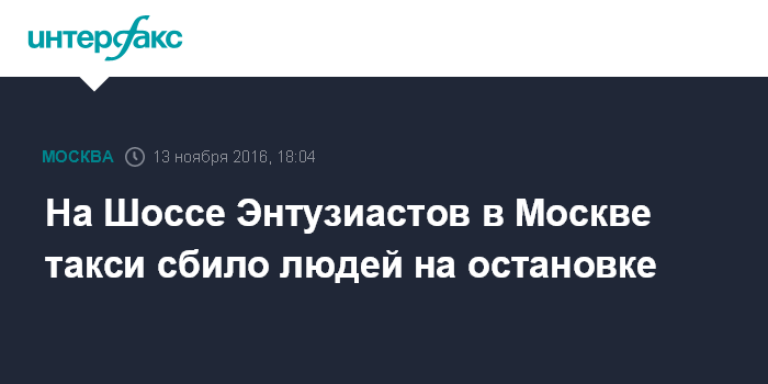 Москва. 13 ноября. INTERFAX.RU - Шесть человек получили травмы в результате выезда автомобиля такси на остановку общественного транспорта на востоке Москвы, сообщил "Интерфаксу" источник в правоохранительных органах.