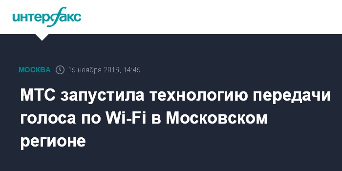 Москва. 15 ноября. INTERFAX.RU - ПАО "Мобильные Телесистемы" (МТС) запустило в коммерческую эксплуатацию в Московском регионе технологию голосового трафика по сетям Wi-Fi (Wi-Fi Calling), заявил журналистам вице-президент компании по стратегии и маркетингу Василь Лацанич.