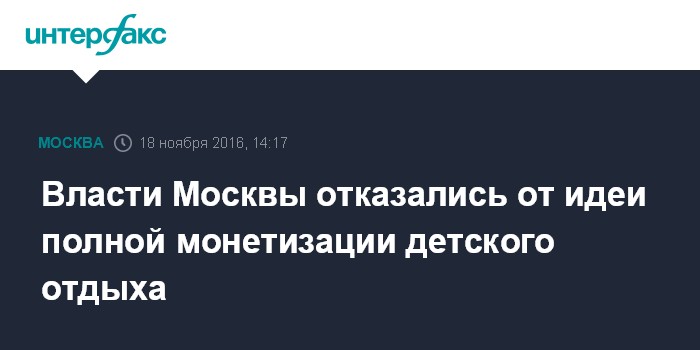 В ноябре газета "Коммерсант" сообщила со ссылкой на свои источники, что в московской мэрии после трагедии в Карелии намерены перестать заниматься организацией детского отдыха, и вместо путевок давать родителям деньги. Вместе с тем такую монетизацию летнего отдыха детей критиковали эксперты - по их мнению, такое решение ухудшит положение социально незащищенных семей.