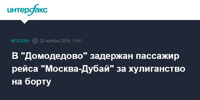 Ранее некоторые СМИ сообщили о задержанных в "Домодедово" минувшей ночью пьяных дебоширах, которые скандалили в салоне самолета рейса "Москва-Дубай", угрожали якобы имевшейся у них бомбой и пытались прорваться в кабину пилотов.