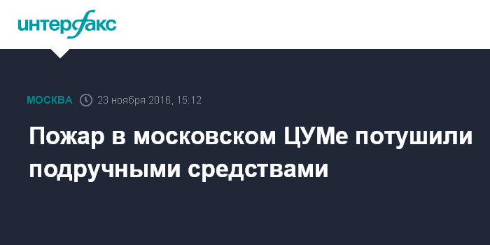 Москва. 23 ноября. INTERFAX.RU - Пожар в здании Центрального универсального магазина (ЦУМ) в Москве потушен, сообщили "Интерфаксу" в пресс-службе столичного главка МЧС.
