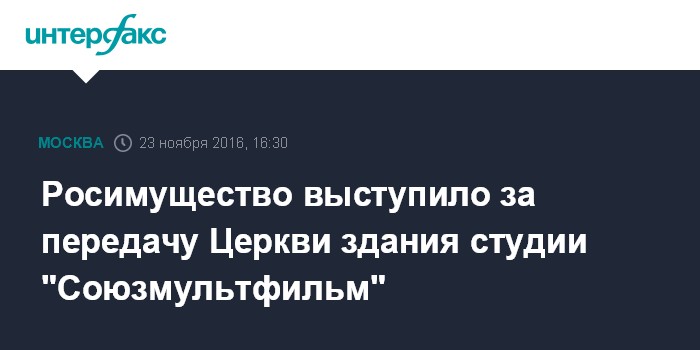 Москва. 23 ноября. INTERFAX.RU - Росимущество выступило за передачу Церкви здания бывшего храма Святителя Николая в Новой Слободе в центре Москвы, откуда переезжает студия "Союзмультфильм".
