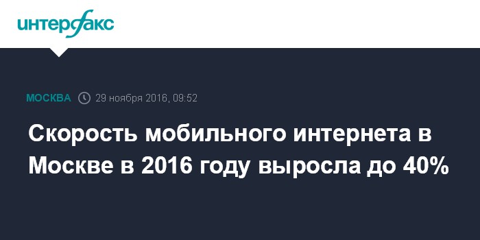 Скорость мобильного интернета в Москве в 2016 году выросла до 40%