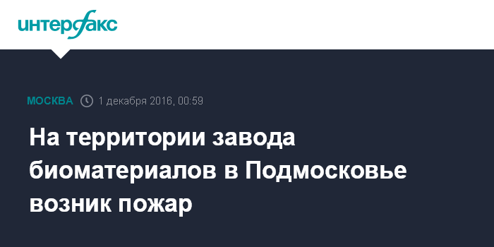 Москва. 1 декабря. INTERFAX.RU - В подмосковном Красногорске загорелось помещение на территории завода биоматериалов, сообщили "Интерфаксу" в ночь на четверг в ГУ МЧС по региону.