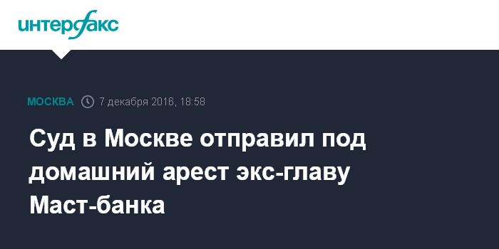Суд в Москве отправил под домашний арест экс-главу Маст-банка