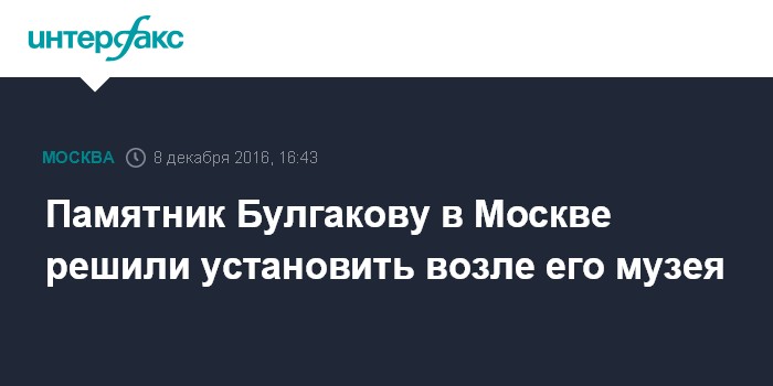 Москва. 8 декабря. INTERFAX.RU - Памятник Михаилу Булгакову установят в центре столицы на Большой Пироговской улице в сквере около музея писателя между домами 35 и 37. Соответствующее решение принято на заседании комиссии по монументальному искусству при Мосгордуме в четверг.