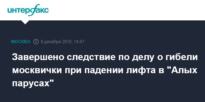 Завершено следствие по делу о гибели москвички при падении лифта в "Алых парусах"