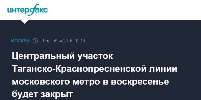 Центральный участок Таганско-Краснопресненской линии московского метро в воскресенье будет закрыт
