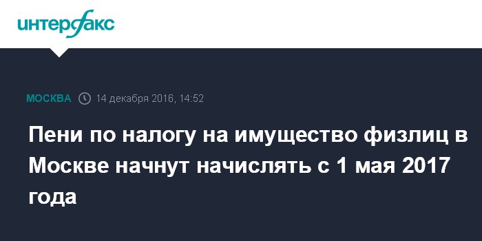 Пени по налогу на имущество физлиц в Москве начнут начислять с 1 мая 2017 года