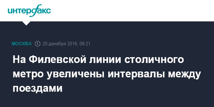 Москва. 20 декабря. INTERFAX.RU На Филевской (голубой) линии столичного метрополитена увеличены интервалы при движении в сторону станции "Кунцевская".