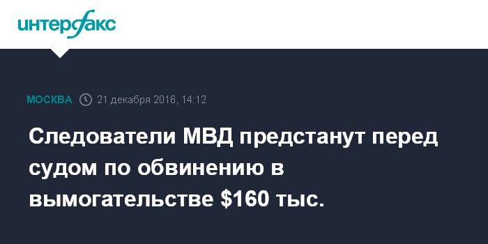 Следователи МВД предстанут перед судом по обвинению в вымогательстве $160 тыс.
