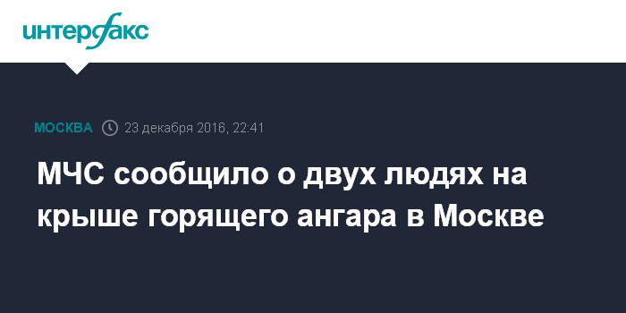Москва. 23 декабря. INTERFAX.RU - Два человека находятся на крыше горящего ангара на юго-востоке Москвы, сообщили "Интерфаксу" в пятницу в пресс-службе столичного МЧС.