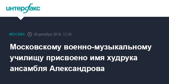 Московскому военно-музыкальному училищу присвоено имя худрука ансамбля Александрова