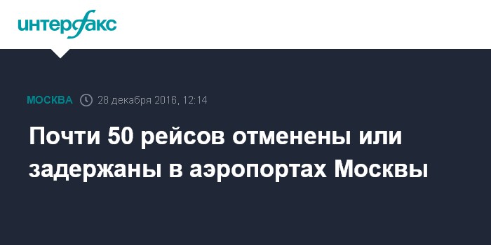 Москва. 28 декабря. INTERFAX.RU - В аэропортах Москвы 37 рейсов отменено, еще 11 задержано, следует из информации, размещенной в среду на портале "Яндекс. Расписание".