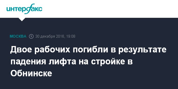 Москва. 30 декабря. INTERFAX.RU - Строительный лифт вместе с двумя рабочими упал с 13 этажа на стройке в Обнинске Калужской области, сообщила пресс-служба регионального следственного управления СКР.
