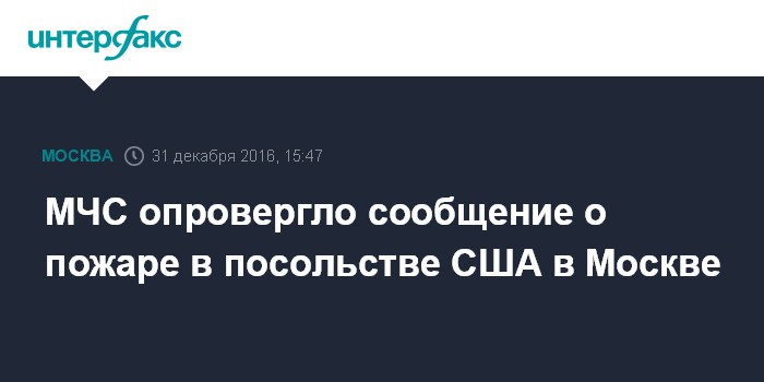 Москва. 31 декабря. INTERFAX.RU - Столичный главк МЧС опроверг информацию некоторых СМИ о пожаре, якобы возникшем в посольстве США в Москве.