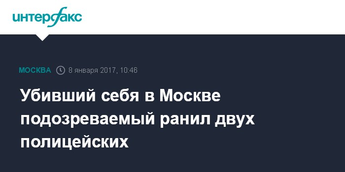 Москва. 8 января. INTERFAX.RU - В Москве подозреваемый в убийстве мужчины ранил двух полицейских, после чего совершил самоубийство.