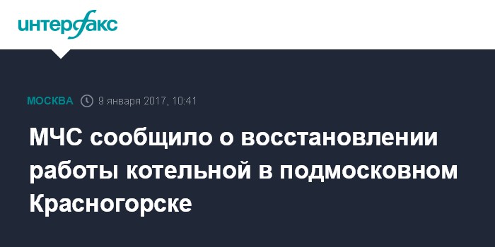 МЧС сообщило о восстановлении работы котельной в подмосковном Красногорске