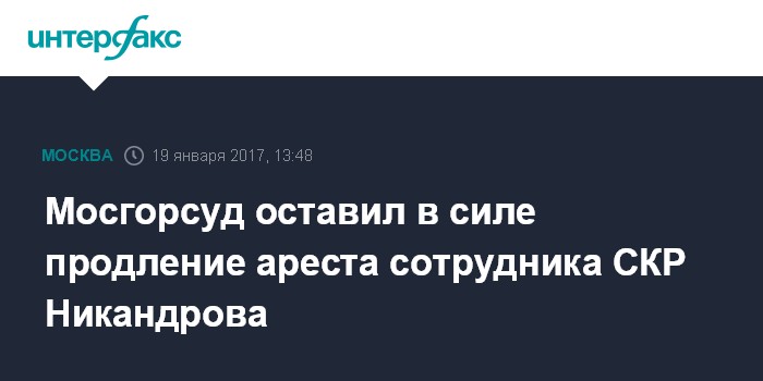 Москва. 19 января. INTERFAX.RU - Мосгорсуд признал законным продление на три месяца ареста первому заместителю руководителя столичного главка Следственного комитета Денису Никандрову, обвиняемому в коррупции.